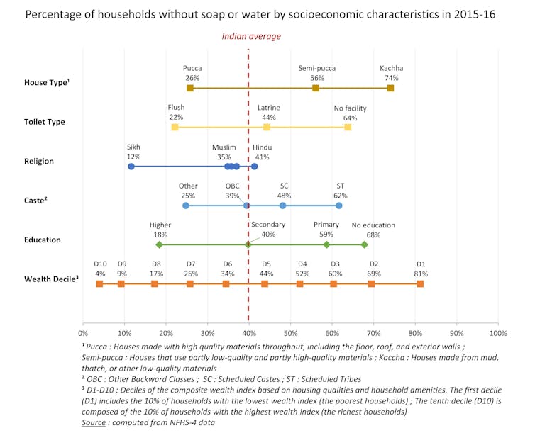 This is how information was collated in India’s last national demographic survey coordinated by the International Institute for Population Sciences in 2015-16, from where the data for this study was drawn. It found that 39.8% of households had no soap or no water, a situation often explained by the absence of soap during the survey.