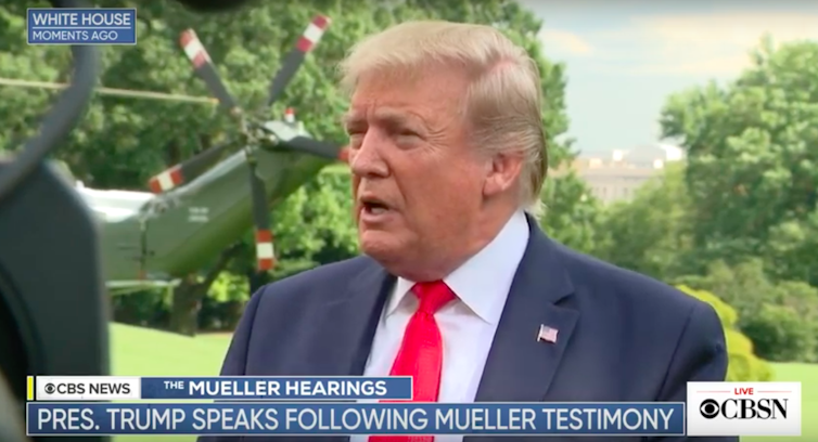 Shortly after Mueller concluded his testimony, Trump stepped out onto the South Lawn to talk to reporters.