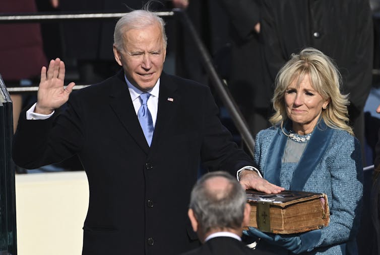 Biden emphasized unity in his inaugural address in the face of the COVID-19 pandemic, the dangerous scourge of misinformation, and bitter partisan divisions in modern-day America: